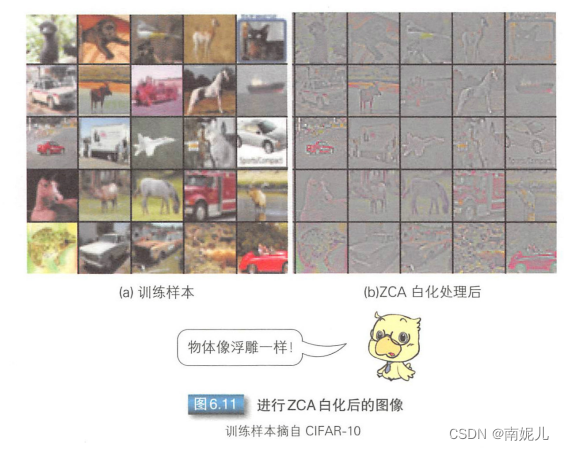 白化是为了消除数据间的相关性。经过白化处理后,数据之间的相关性较低,图像边缘增强。