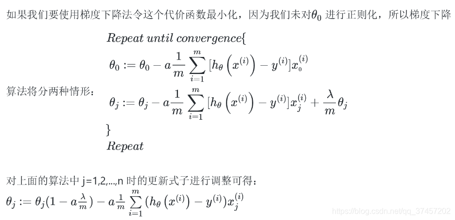 # 在原先的基础上,加上正则化 ((learningRate / len(X)) * theta[:, i])