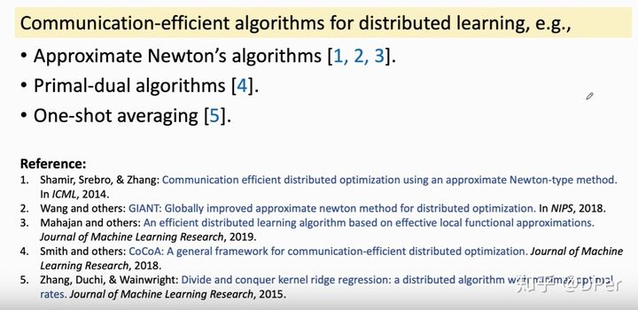 减少通信次数是个大问题,减少通信次数并不是Federated Averagin这篇文章首次提出的,这里就列了一些文章,但是这些文章大都要求数据独立同分布,这就难以用到联邦学习中。[4]不要求数据独立同分布,但是不适用于深度学习,神经网络很难求对偶问题。
