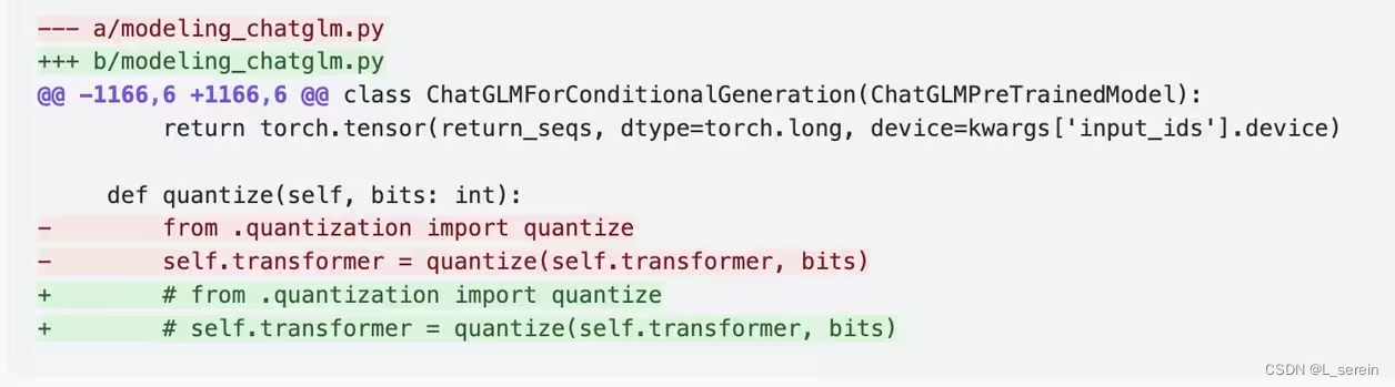 修改文件 THUDM/chatglm-6b/modeling_chatglm.py 最后位置注释两行