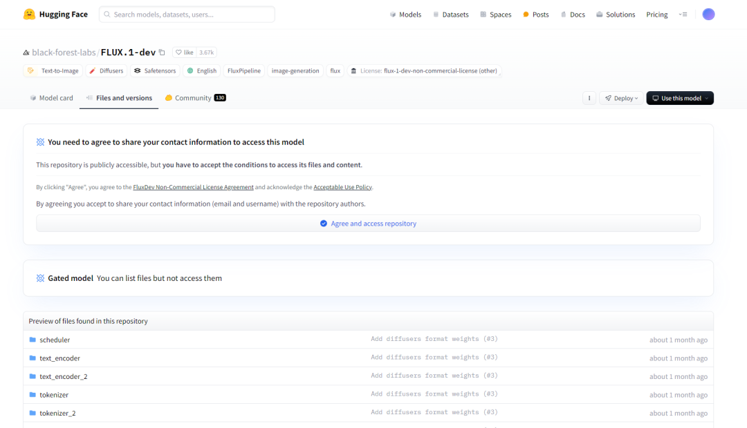 2、进入官网的汉堡主页https://huggingface.com/black-forest-labs/flux.1-dev