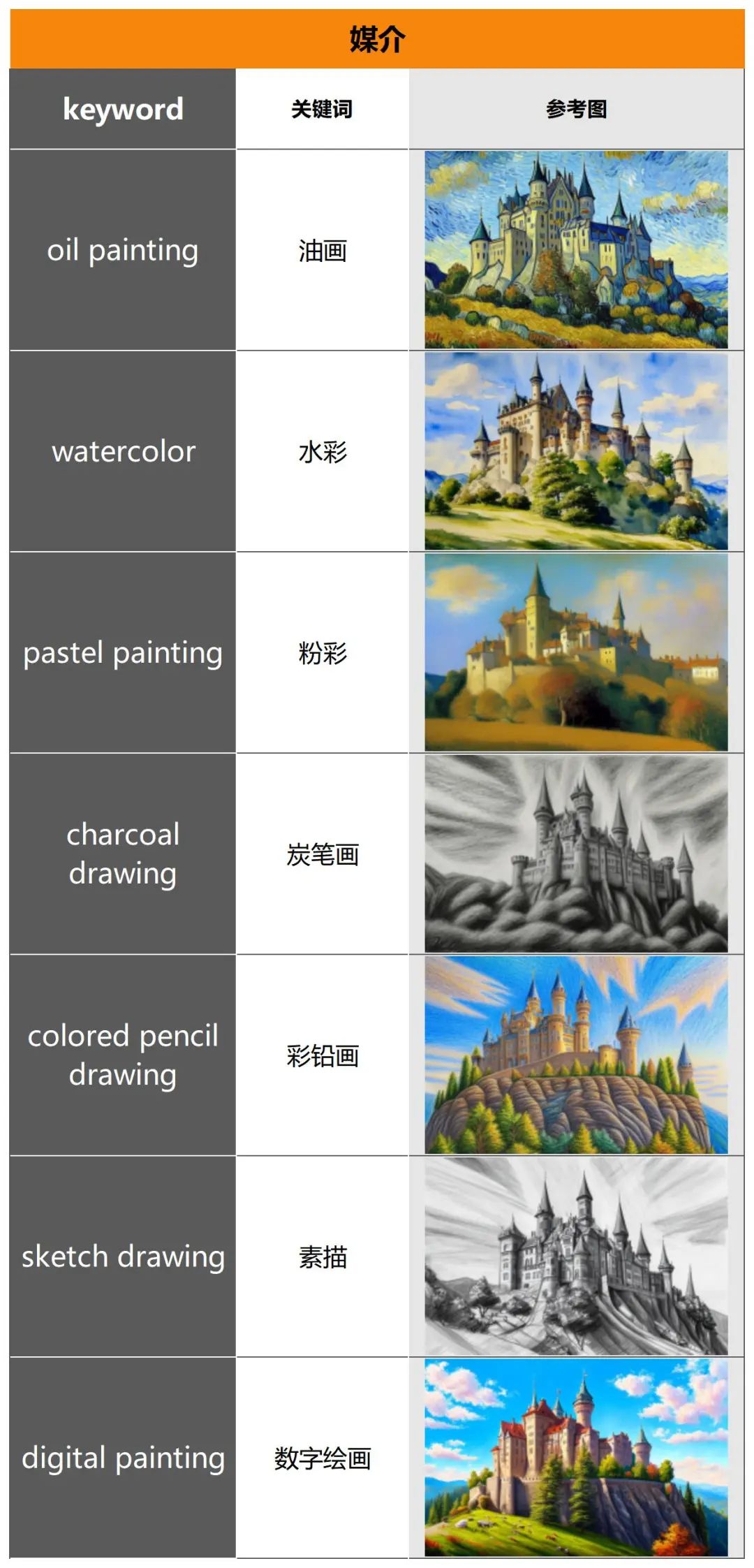 本期内容的核心目标是向你展示构图、风格、媒介、画面清晰度、灯光效果以及颜色氛围等6大类别中的常用标签(tags)