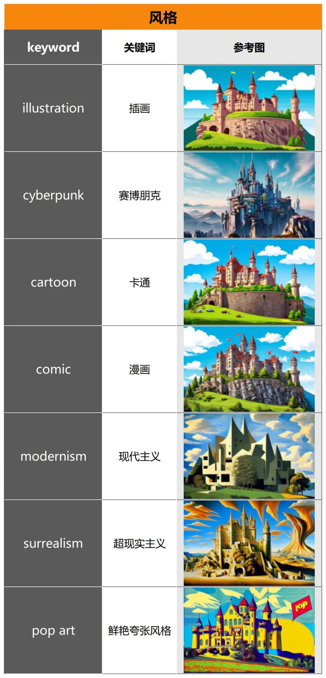 “illustration”(插画)、“cartoon”(卡通)等,生成的图片风格非常多样。这是因为训练数据中的插画风格本身就包含了很多不同的风格变化。