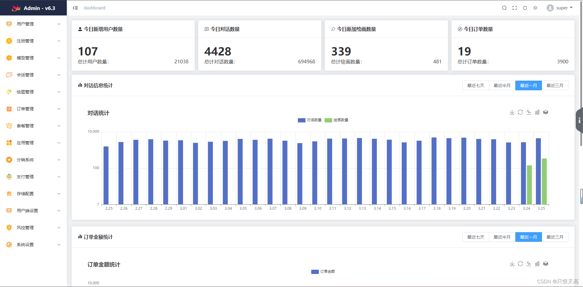 管理端支持超管和普通演示账户用于分销系统、普通账号仅可读权限