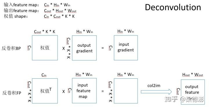 卷积的反向传播是给定输出梯度反求输入梯度,已知输出梯度大小和卷积输出特征图一致,输入梯度大小和输入特征图一致,如果是3x3且步长为2的卷积且padding 为1,那么输出特征图大小相当于是输入的一半,那么反向传播看起来就像是把输出梯度变大到输入梯度大小的过程,就与反卷积所做的工作一致了。