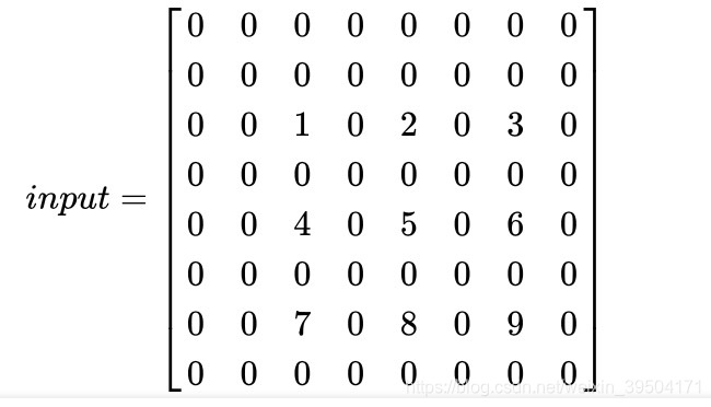 例如这里举例的strides=2,即在输入的每个元素之间填1个0: