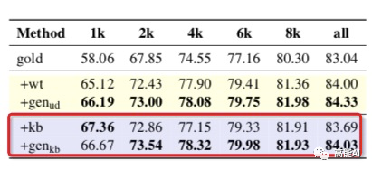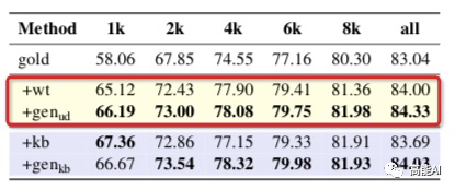 如上图红框所示,总体上DAGA超过了kb方式,低资源条件(1k)下,kb方式还是强于DAGA。