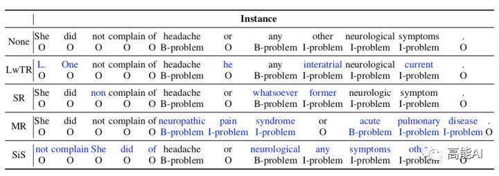 Synonym replacement (SR):即同义词替换,利用WordNet查询同义词,然后根据二项分布随机替换。如果替换的同义词大于1个token,那就依次延展BIO标签。