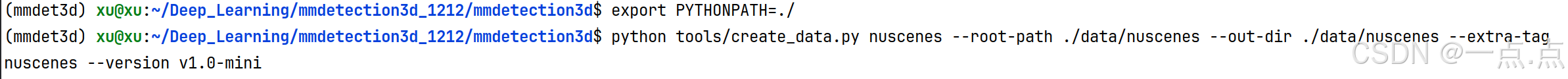总结:在终端运行时,显示找不到某文件或程序(但是此文件就在当前执行程序的目录下,如上图中的mmdetection3d目录下),也可以在终端执行次命令,来设置临时环境变量,代表此临时环境变量为mmdetection3d目录下均是。