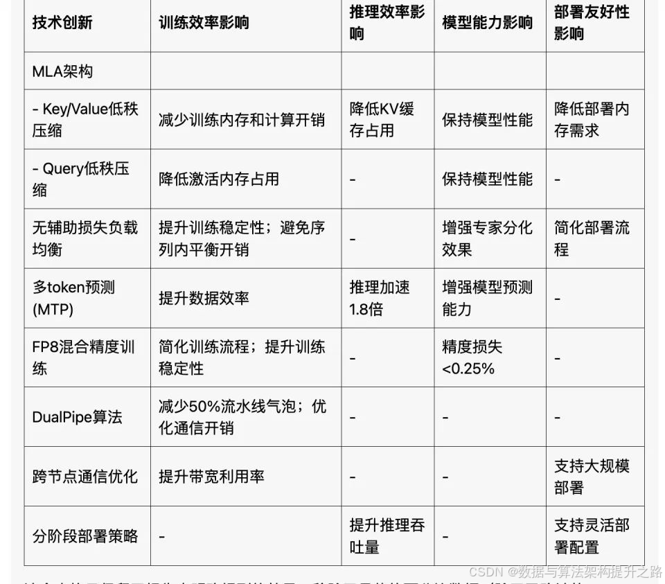 - DeepSeek-V3的整体架构和训练方法都经过了精心设计和优化,MLA只是其中的一个环节。模型的整体能力是各个部件协同作用的结果。