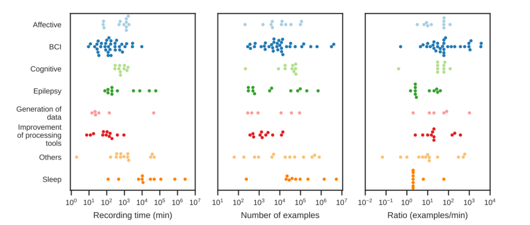 右栏是每项研究脑电图数据时长跟样本数的比值;