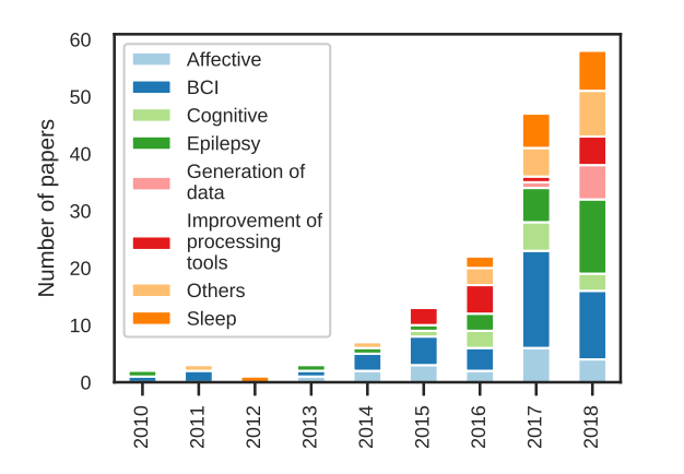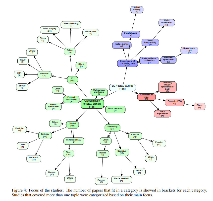 其余的论文(5%)探讨了从脑电图中产生数据的方法,如增加数据或以脑电图为条件生成图像;