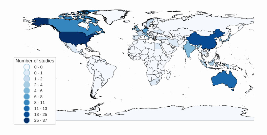第一作者的国籍分布(所以中国还是很猛的):