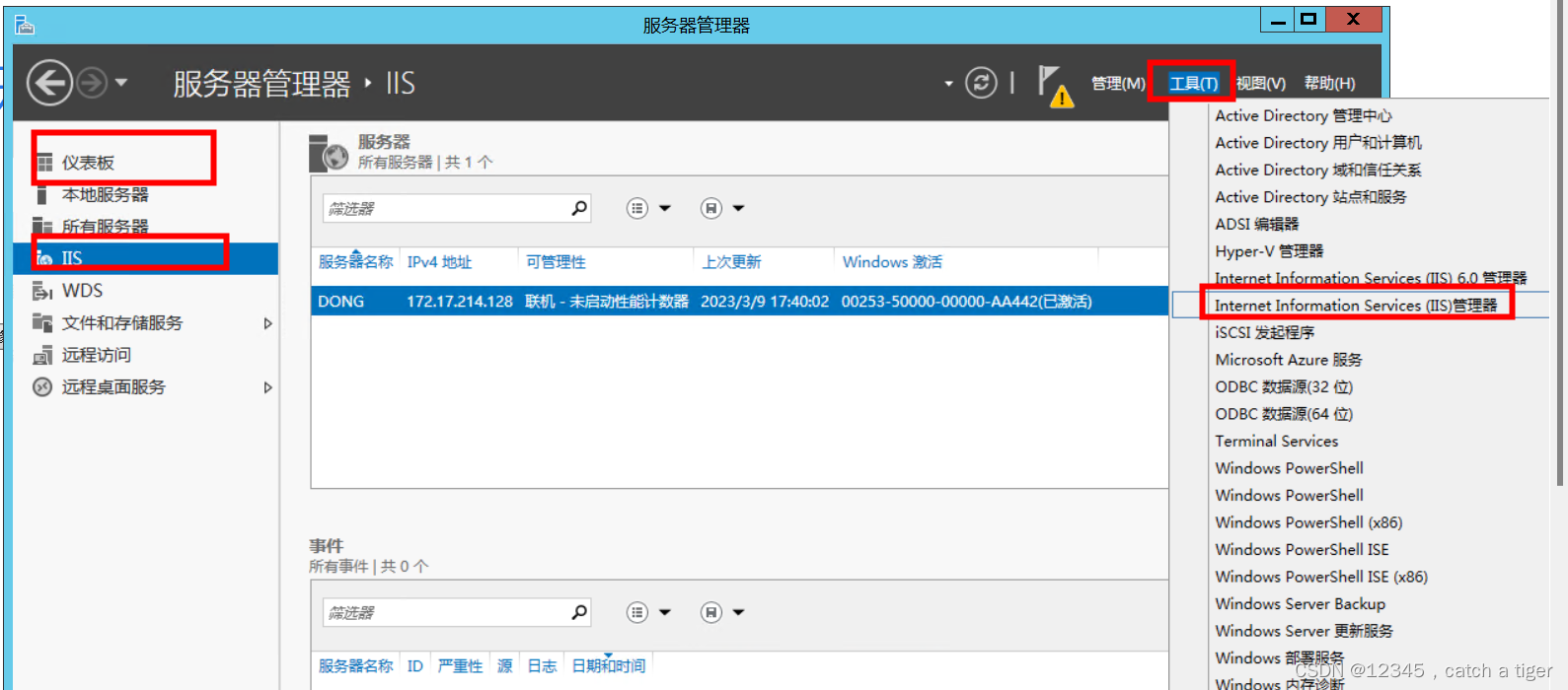 不过正常系统只能通过控制面板->系统和安全->Windows 工具->IIS管理器开启,但远程云服务器桌面可以在仪表面板开启