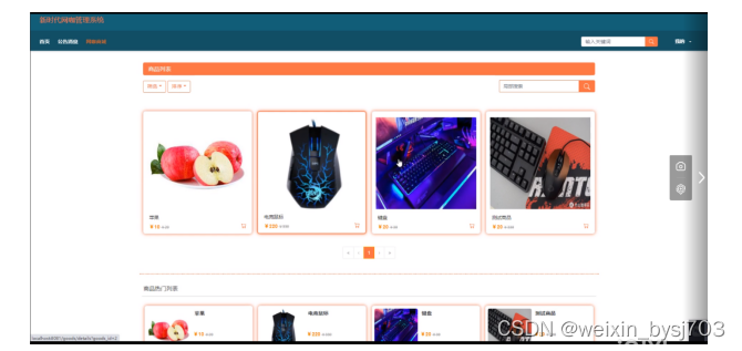 网咖商城,在网咖商城页面可以查看商品列表、商品名称、商品分类、商品价格、商品热门列表、等内容,进行收藏添加到购物车,如图5-2所示。
