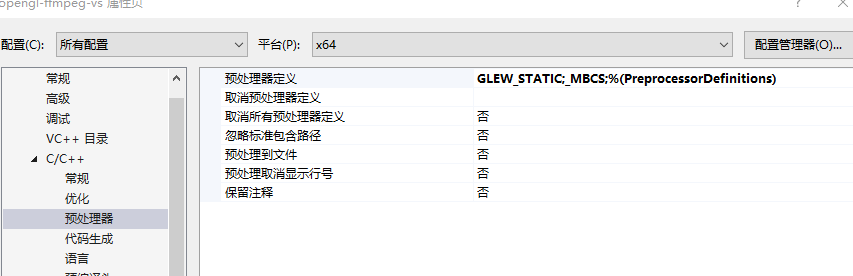 vs配置ffmpeg,opengl,opencv