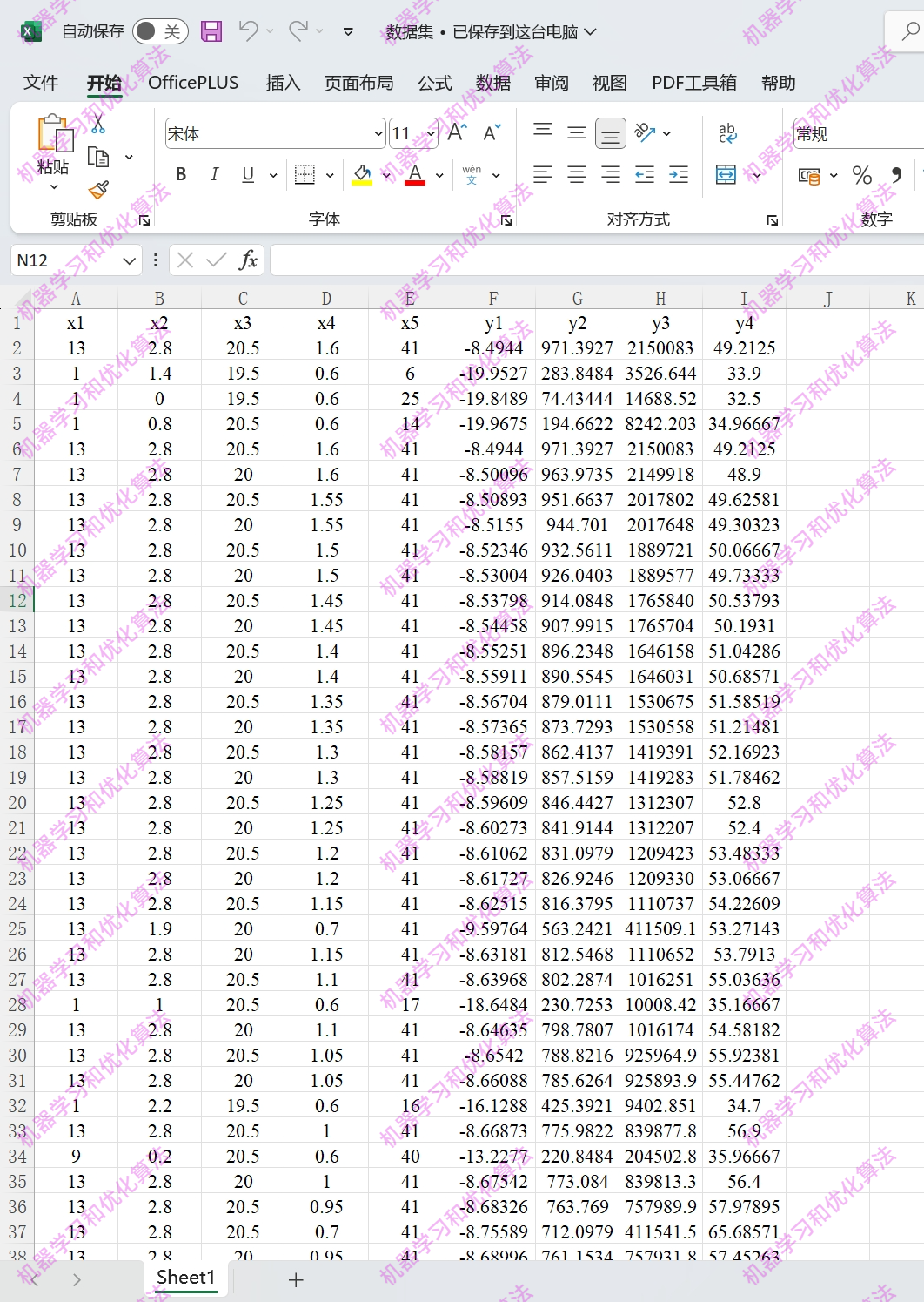 2、数据集有5个输入特征,4个输出,通过NSGAII寻求极值,并得到在极值时(y1max,y2min,y3min,y4min)对应的自变量的解集。
