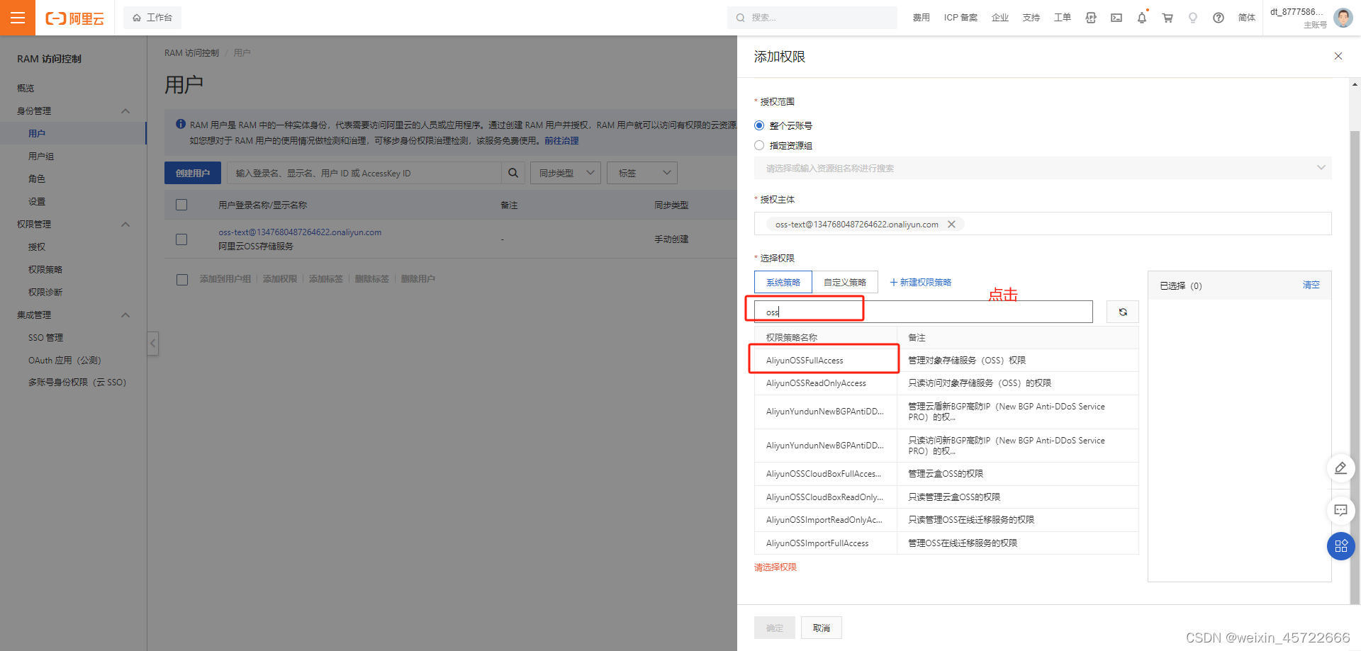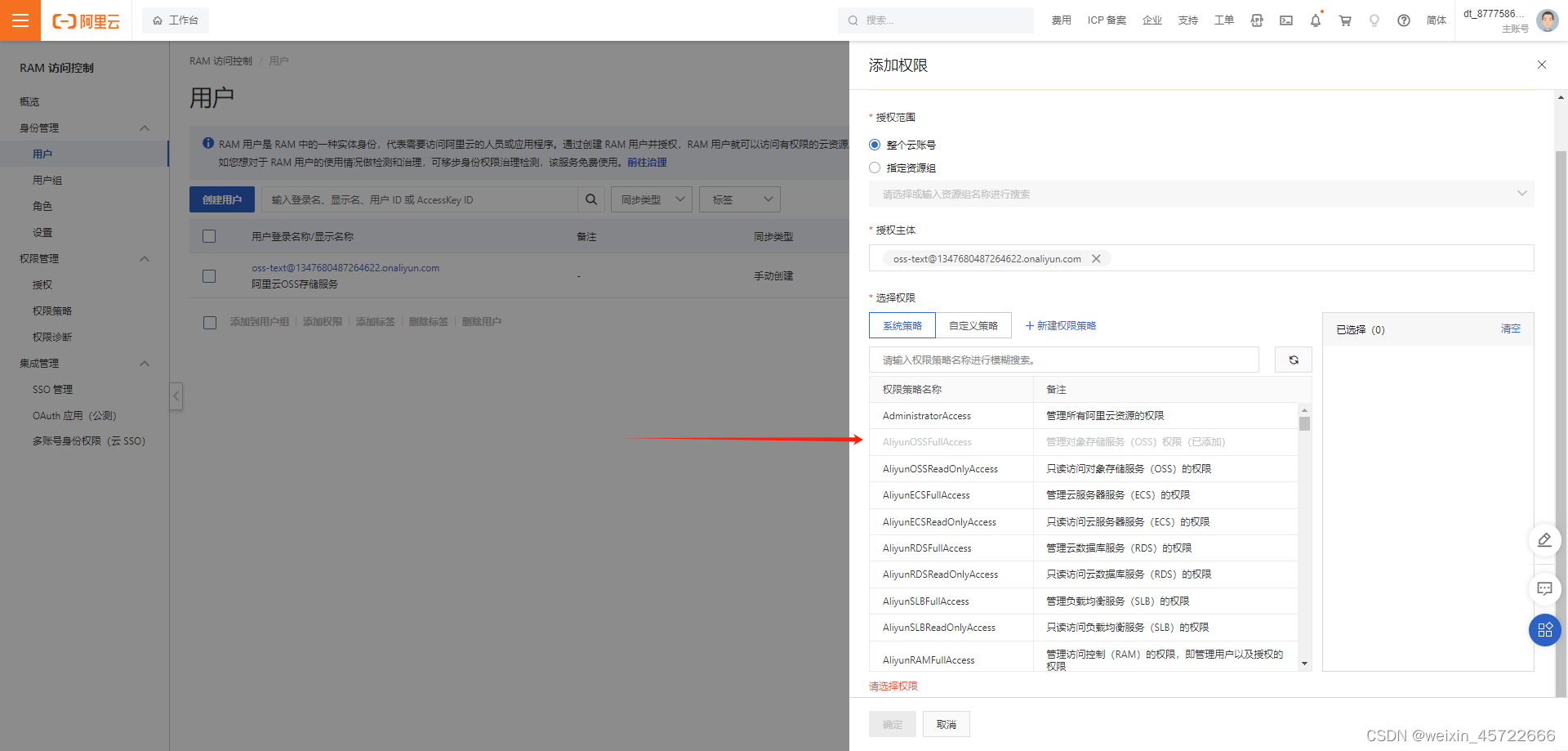 2-4.给子账户添加OSS权限