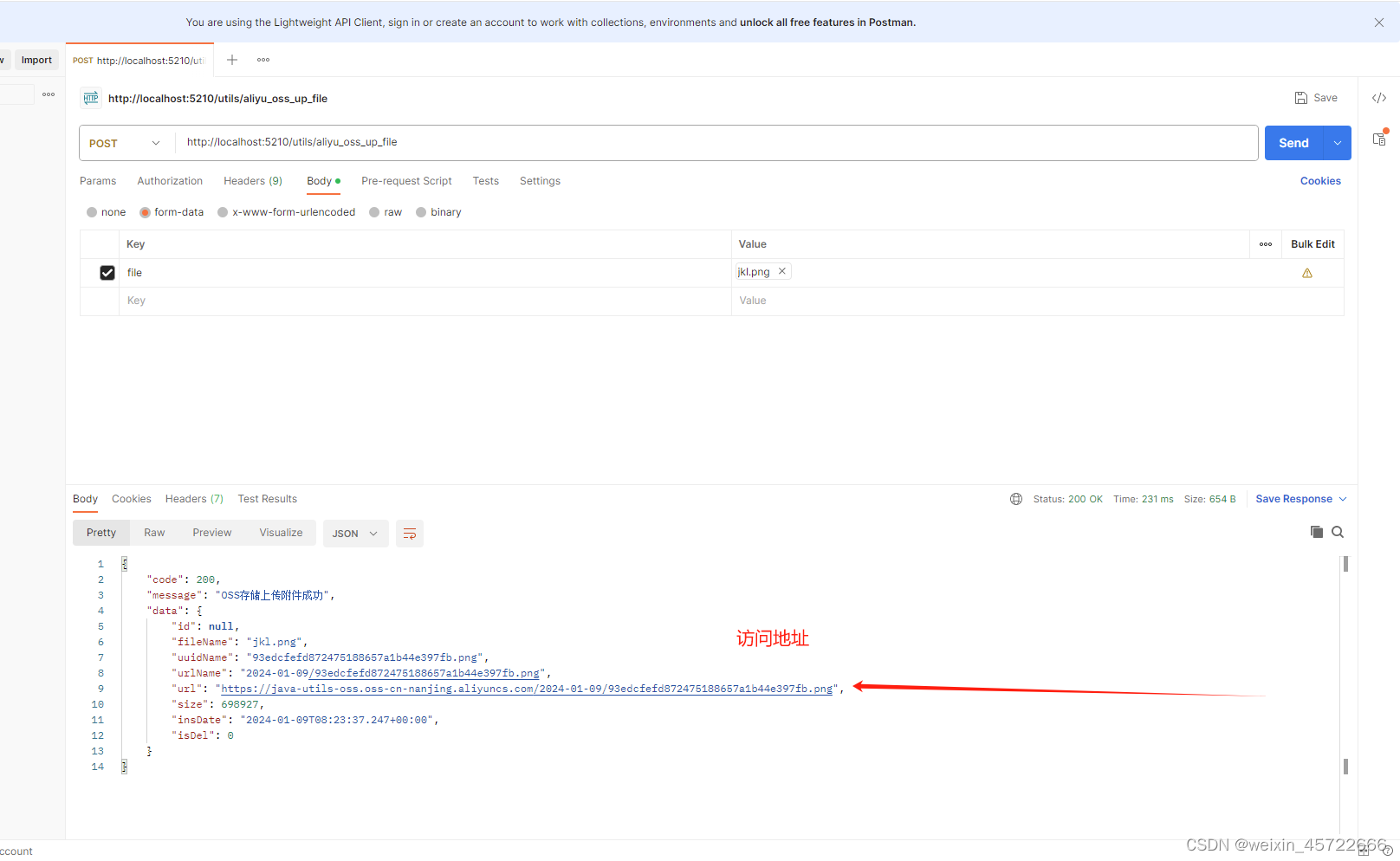 //需要把上传到阿里云oss路径手动拼接出来,返回前端或者保存数据库以便后续访问