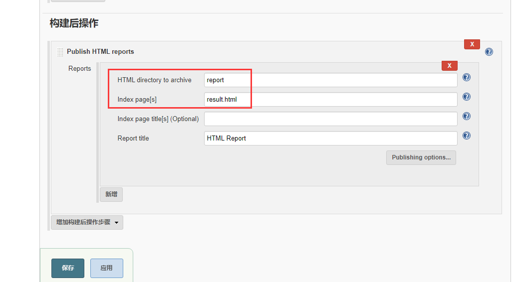 - HTML directory to archive 是上面生成html报告的文件夹地址:report