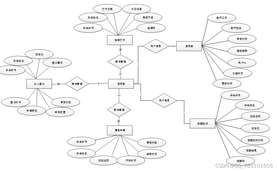 图3.2 校园疫情大学生防控出入系统总E-R关系图