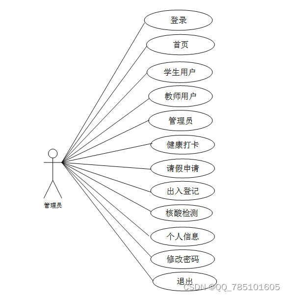 校园疫情大学生防控出入系统中管理员角色用例图如图2.3所示: