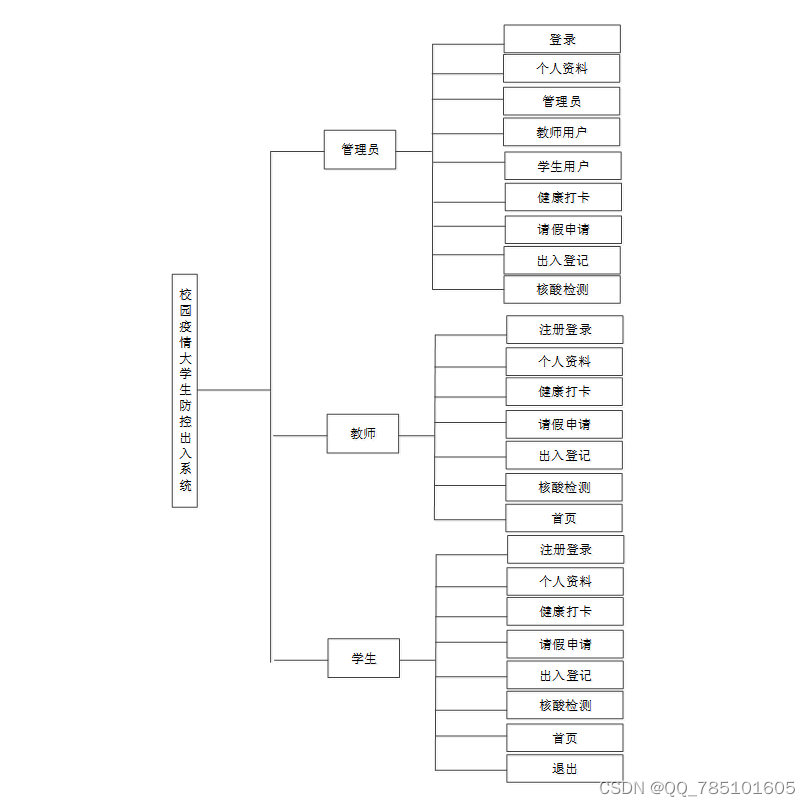 图3.1 校园疫情大学生防控出入系统功能模块图