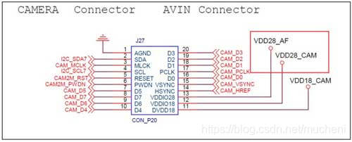 在底板原理图中找到camera扩展端子,camera摄像头驱动中将这俩路电压设置为2.8v 的电压。所以在后面我们修改这俩路电压的时候要先去掉摄像的驱动。