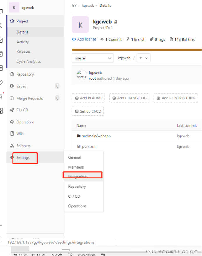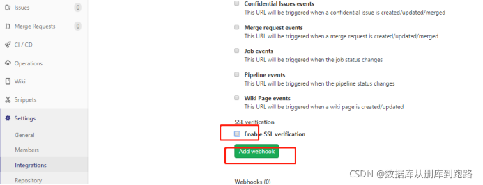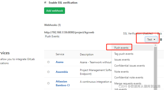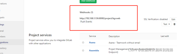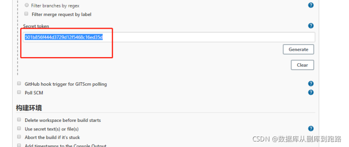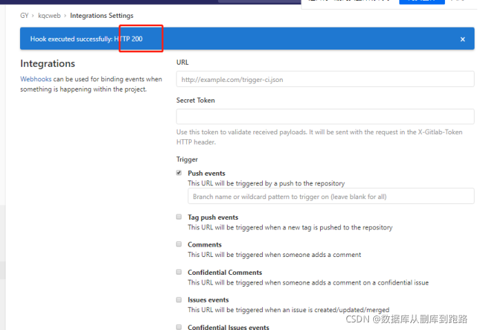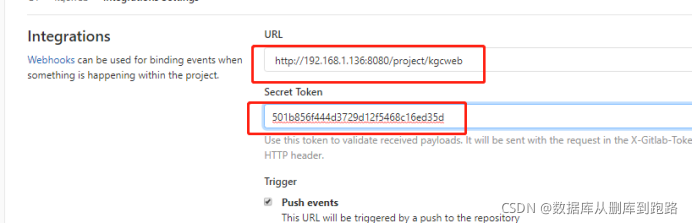 将jenkins上的URL与Secret token复制下来粘贴到gitlab上