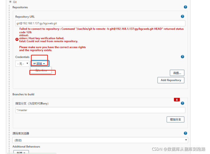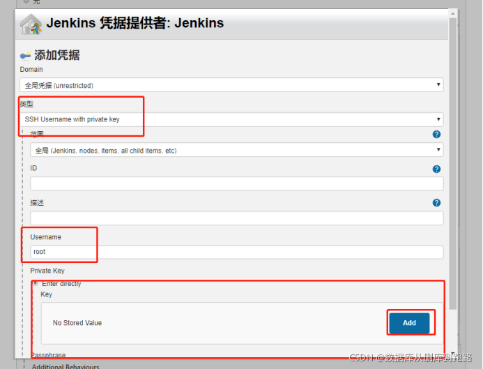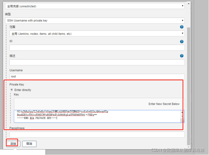 、点击添加jenkins将密钥粘贴上去然后点击添加