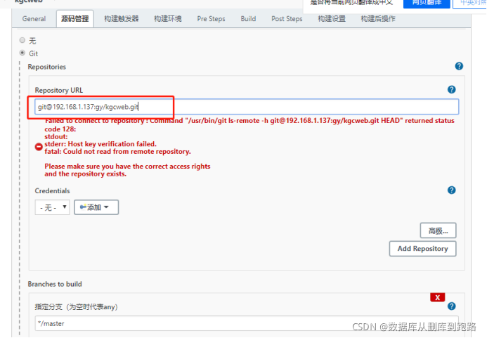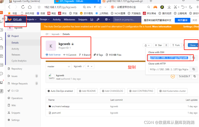 在gitlab主机上将路径复制下来粘贴到jinkins主机的URL上