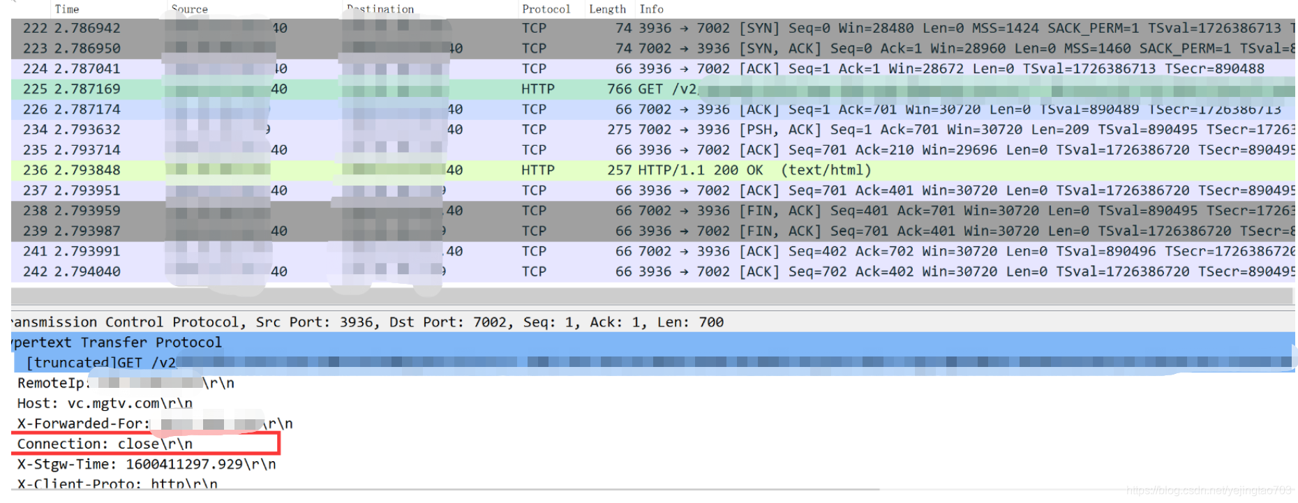 有了这么多知识储备后回到本次案例,调用链路是客户端先到lb再到lb后的服务器,因为从表象来看客户端对这个异常没有任何感知,是成功完成了通信的,所以可以排除握手和服务器内容返回这部分有问题,基本锁定是服务端把数据传送完毕后的阶段,那就只剩下四次挥手这一块了。要彻底排查这种网络上的异常,只能抓包看下。