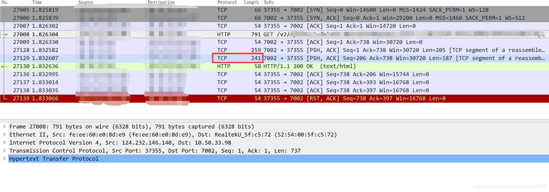 先看下正常的包,没有经过lb,客户直接请求到服务器: