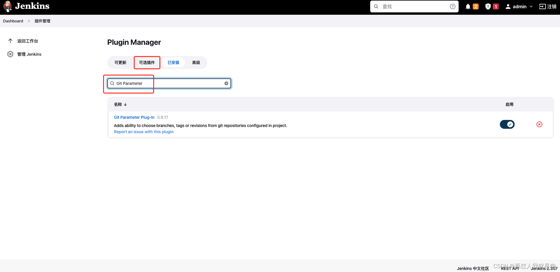 在管理中选插件,输入Git Parameter,点击安装