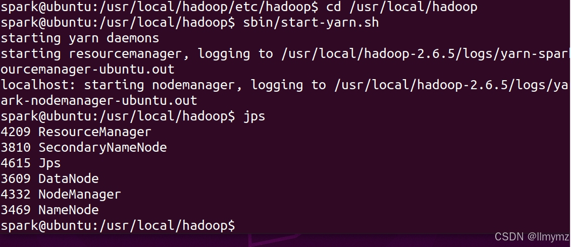 从 jps 命令的输出结果可以看出,YARN 集群资源管理服务已在运行。