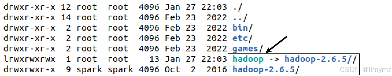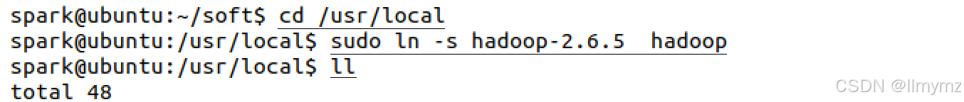 中,并创建一个软链接文件指向 Spark 目录并修改目录的用户属性。