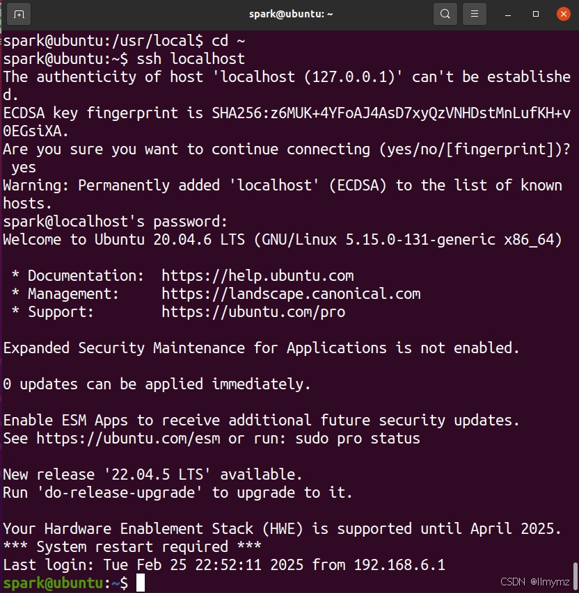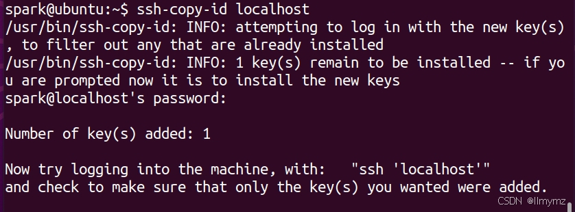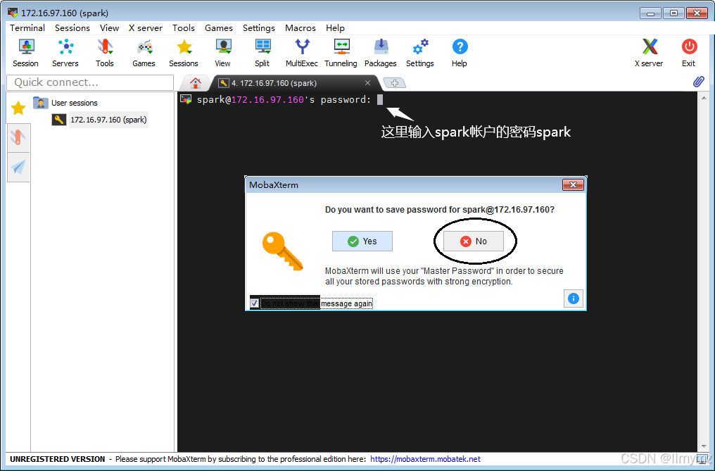 输入连接所用帐户 spark 的密码(密码也是 spark)并回车,在弹出的是否要保存密码