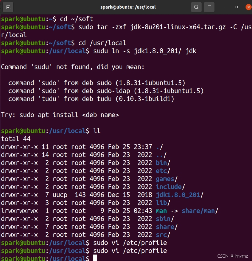 1)打开一个 Linux 终端,在其中执行以下命令,将 JDK 解压缩到/usr/local 目录中,