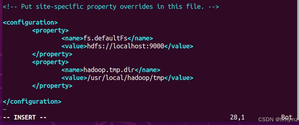 2)修改 Hadoop 核心配置文件 core-site.xml,在里面增加 HDFS 地址端口和临时工作