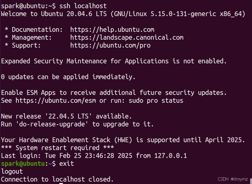 4)在本机通过 ssh 命令再次执行一下远程连接,测试一下是否能够免密登录,正常的