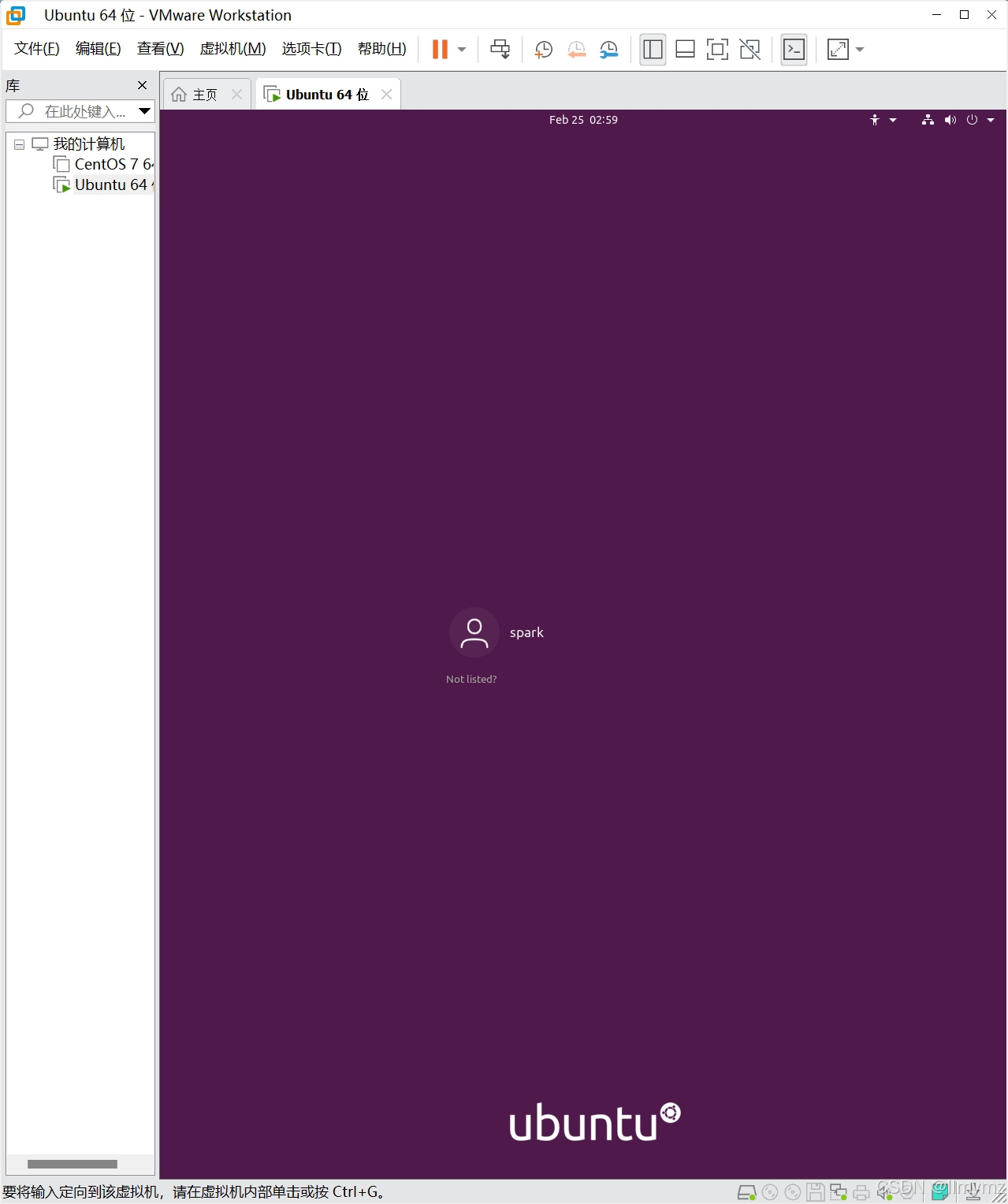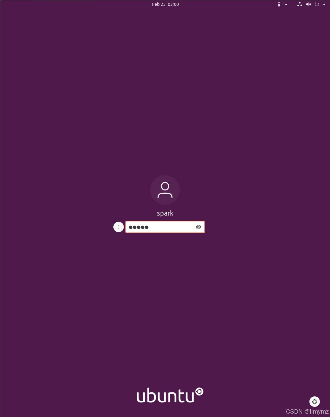 10)点击登录界面中列出来的 Linux 帐户“spark”,然后输入创建虚拟机时设定的密码“spark”,按