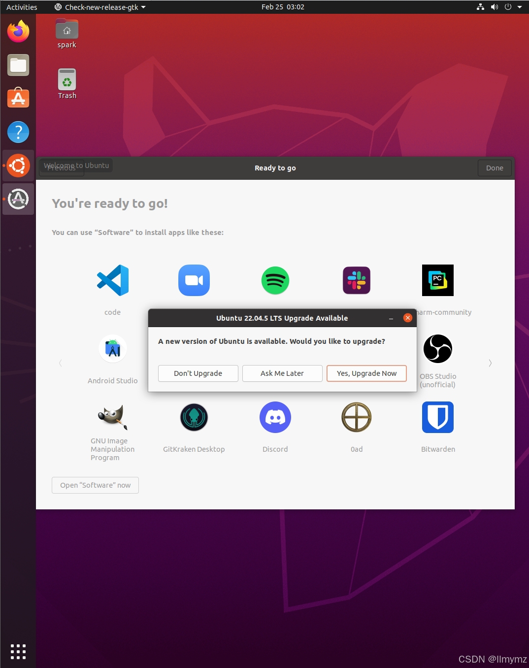 12)如果在使用过程中出现类似下面的升级提示,直接点击“Don't Upgrade”保持当前所用Ubuntu20.04版本即可。