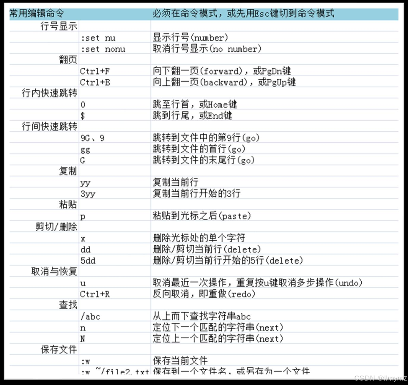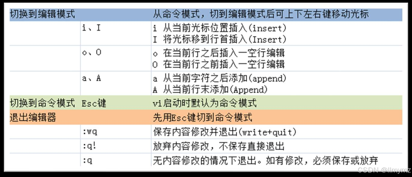 3)下面是最常用的一些 Vi 编辑器分类命令,掌握好这些最基本的 Vi 编辑命令很重要。