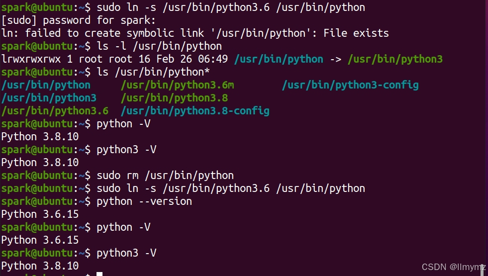 如果输出结果为lrwxrwxrwx 1 root root 16 Feb 26 06:49 /usr/bin/python -> /usr/bin/python3,可以通过sudo rm /usr/bin/python命令删除现有链接再创建新的连接