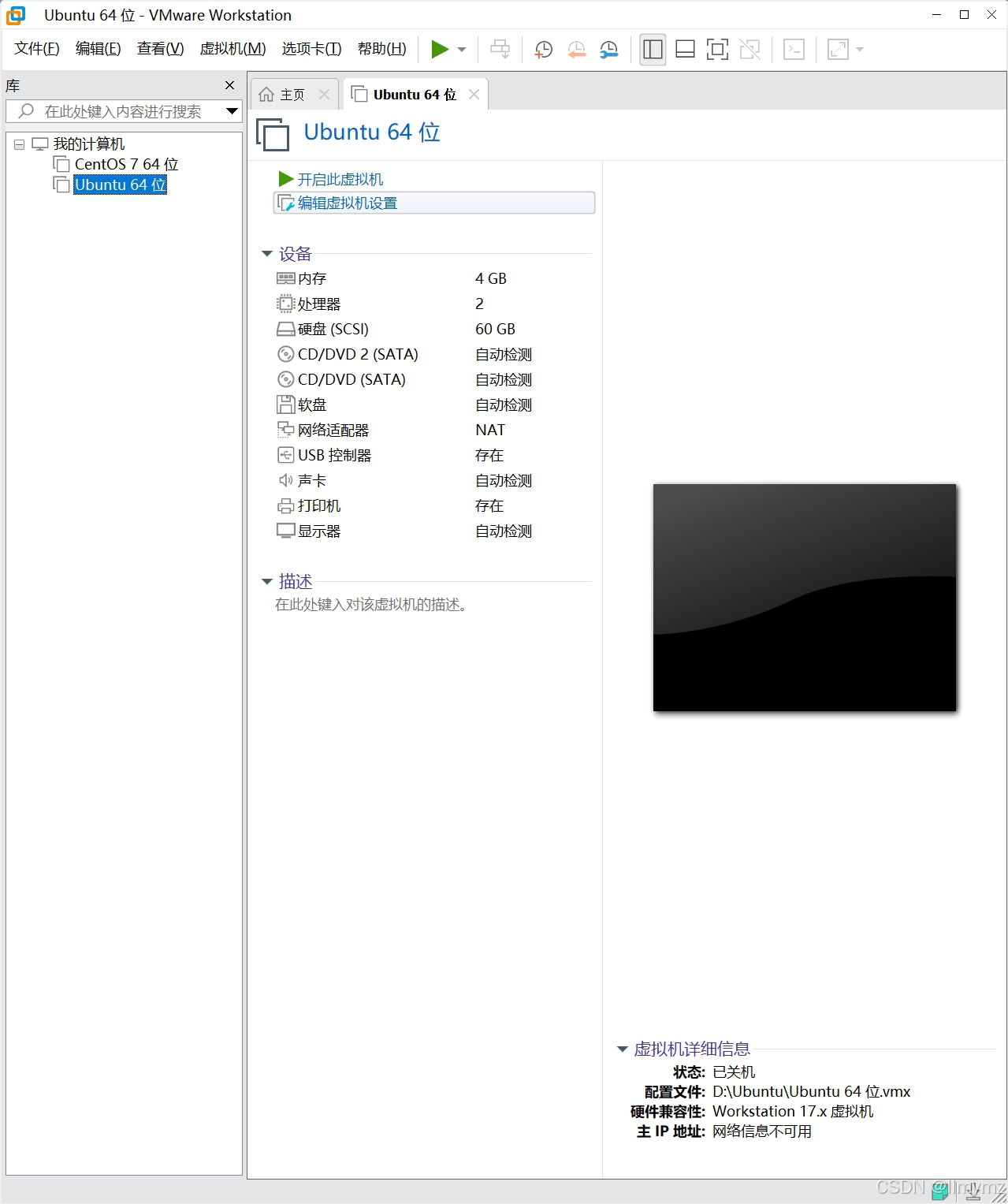 17)回到 Vmware Workstation,选中这里安装的 Ubuntu20.04,然后点击“编辑虚拟机设置”。
