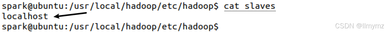 4)最后查看一下 slaves 配置文件的内容,这个文件中有运行 DateNode 进程的节点信