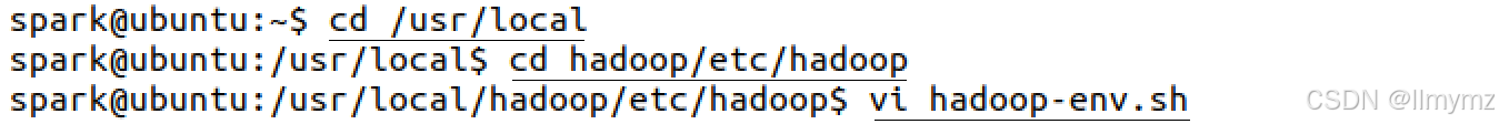 1)切换到 Hadoop 的配置文件目录,先修改其中的 hadoop-env.sh 运行环境文件,找到