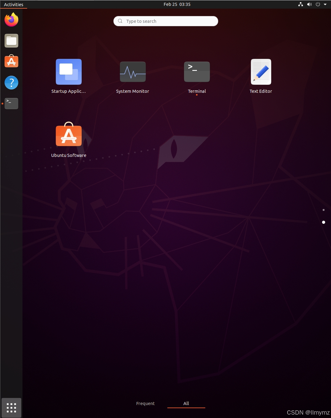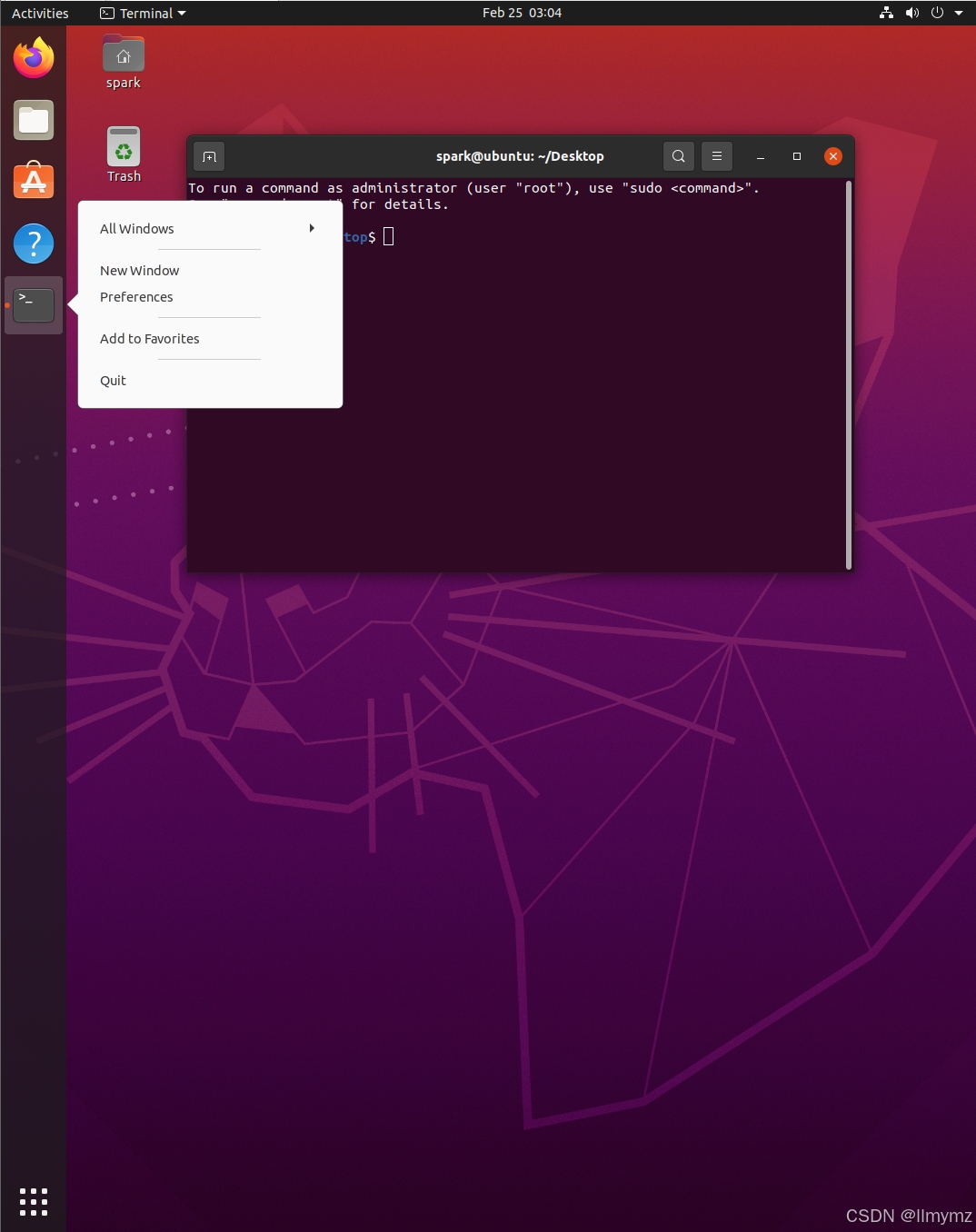 回车键后就进入到 Ubuntu20.04 操作系统界面。Ubuntu 默认是不允许直接使用 root 帐户登录的,在涉及到一些需要 root 权限操作的场合下,就要在 Linux 命令之前添加 sudo 来获得 root 帐户操作的权限。