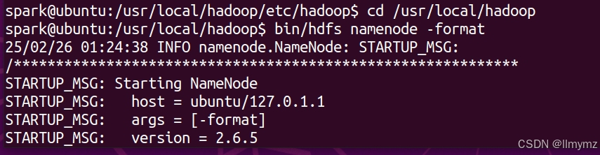格式化操作,这个工作只执行一次。如果要重新初始化,应先清除相关目录中的内容(HDFS