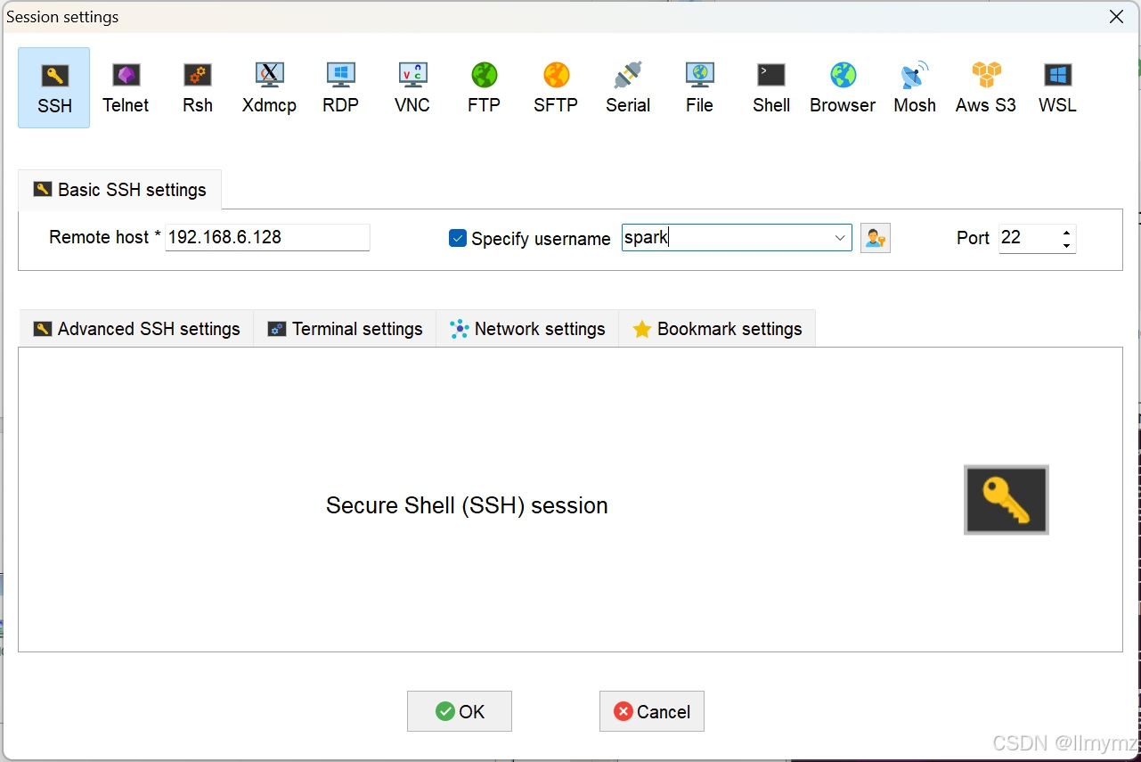 虚拟机的 IP 地址,然后指定登录所用的帐号 spark,再点击 OK 即可
